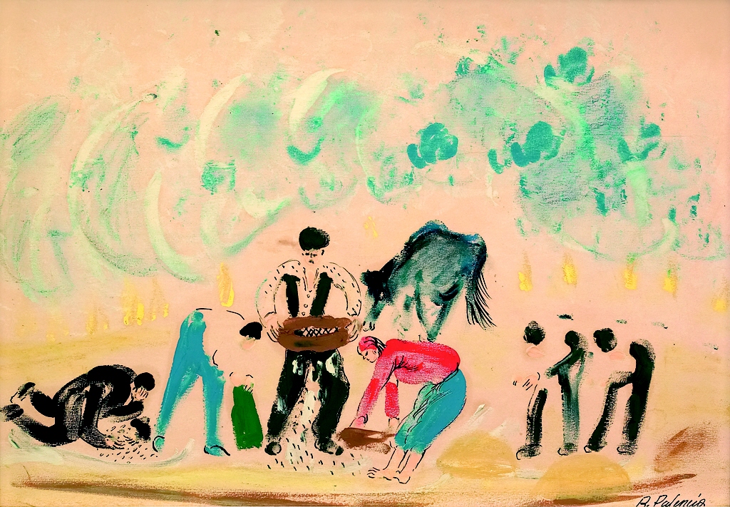 Esta obra pertenece a la etapa realista que inicia después de la guerra civil, en la que se aleja de las posiciones de vanguardia. En esta etapa centra su atención en el paisaje castellano y en el entorno del campesinado y busca la raíz de la experiencia estética en la naturaleza. Esta obra podría situarse cronológicamente cerca de La Era que firma en 1965, y en ella destaca la sutileza de las formas con las que construye lo que podríamos llamar un paisaje con figuras.