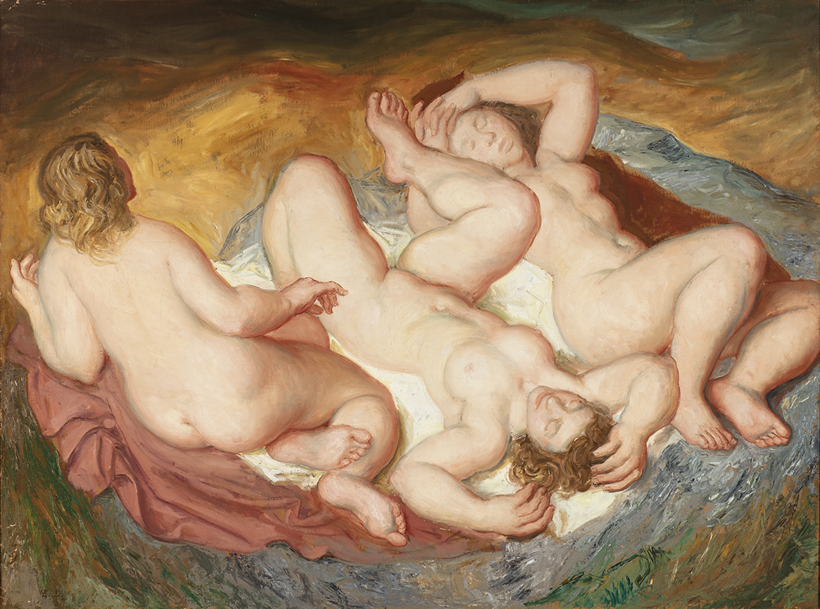Imaxe: Descargar Escuchar Las Parcas Autores/as: Díaz Pardo, Isaac Cronología: ca. 1945 Ficha técnica Materia / Soporte: Lienzo Autores/as: Díaz Pardo, Isaac Cronología: ca. 1945 Procedencia: Colección particular Medidas: 150x200 cm Técnica: Pintura al óleo