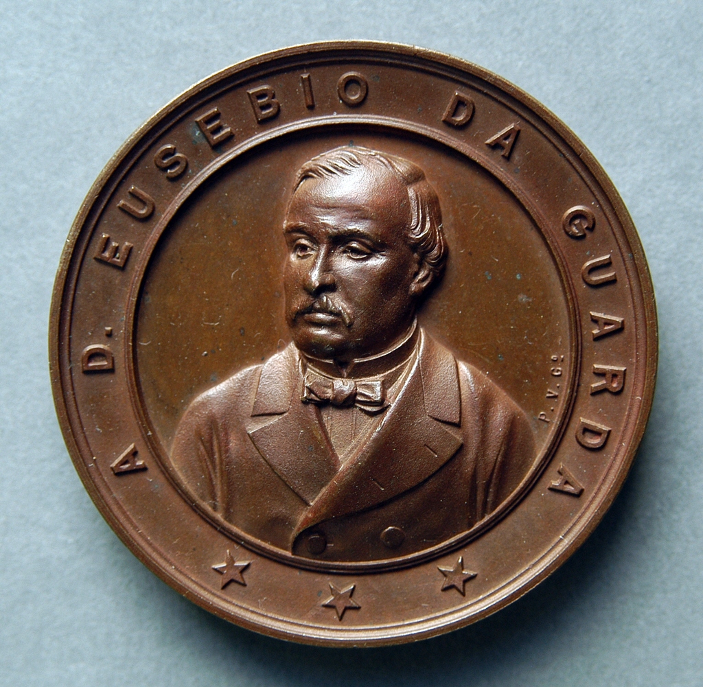 ANVERSO: A D. EUSEBIO DA GUARDA (tres estrellas). Busto de Eusebio da Guarda de frente, a la derecha firma del grabador P. V. Gº.