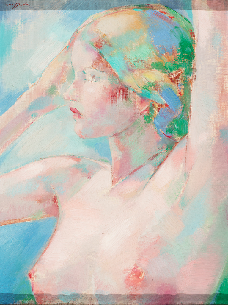 Imaxe: Descargar Escuchar Torso Autores/as: Quessada, Xaime Cronología: 1988 Ficha técnica Número de inventario: 6498 Materia / Soporte: Lienzo Autores/as: Quessada, Xaime Cronología: 1988 Clasificación: Pintura Iconografía: Figura. Femenina Procedencia: Donación de Elvira Álvarez Vega Medidas: 50x38 cm Técnica: Pintura al óleo Objeto: Cuadro