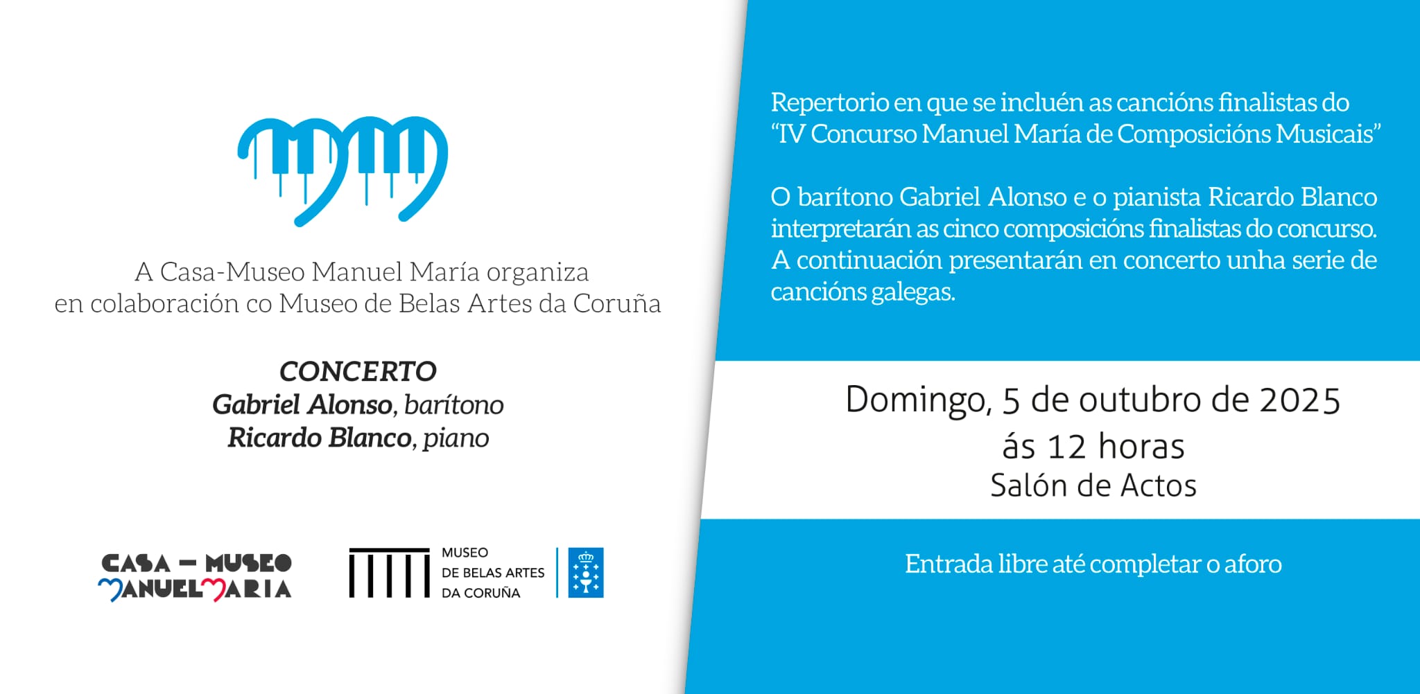 O Museo de Belas Artes da Coruña colabora coa Casa-Museo Manuel María no concerto final do IV Concurso Manuel María de Composicións Musicais.