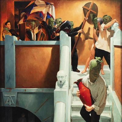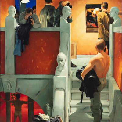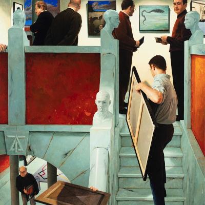 Roberto González Fernández (Monforte de Lemos, Lugo, 1948). Nace nun ambiente familiar receptivo ás artes o que favorece que o seu interese polo debuxo e a pintura se vexa estimulado desde moi cedo. Desde 1967 cursa na Coruña estudos preuniversitarios, á vez que asiste a clases na Escola de Artes e Oficios. Comeza á súa vez a carreira artística baixo o pseudónimo Rubianes, cunha exposición individual na mesma cidade con apenas vinte anos de idade. En 1968 trasládase a Madrid, onde estudará Belas Artes en San Fernando, para logo desprazarse a Edimburgo en 1977. É un dos grandes mestres galegos do hiperrealismo, González é pintor, pero tamén traballa o gravado, a calcografía e o debuxo. Céntrase nunha forma de realismo abstracto, dando mostra dunha certa relación coa linea de autores como Giorgio de Chirico ou mesmo o surrealismo. E é que a súa obra tende a un realismo moi exacto, no formal, pero xerando un clima certamente onírico, inquietante e misterioso. Todo iso en cores neutras, gamas limitadas, cunha enorme nitidez e precisión das figuras, á maneira de Salvador Dalí, ou con elementos como ceos definidos, que nos levan ao propio René Magritte. A obra de Roberto González, sen dúbida, debe verse como un testemuño da súa vida, a pesar das referencias e as proximidades a outros autores, no que o autobiográfico é un elemento caracterizador de todo un corpus de pezas enormemente individualista.