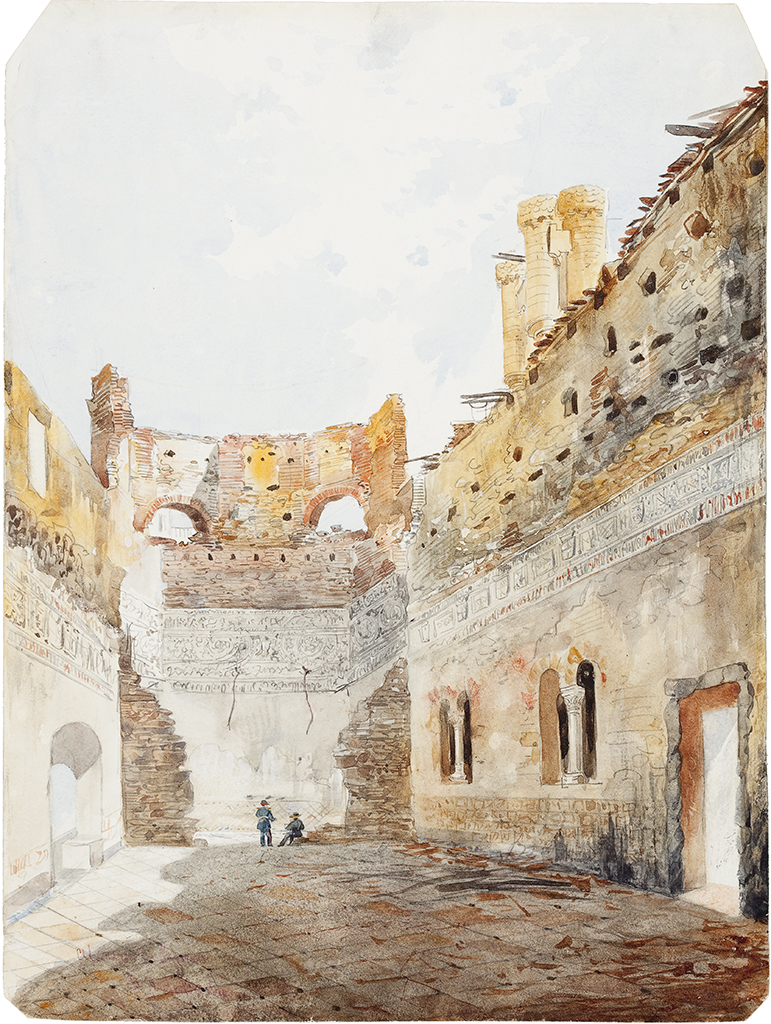 Pedro Pérez de Castro realizou nese mesmo ano tres acuarelas do Alcázar, sendo esta unha delas.