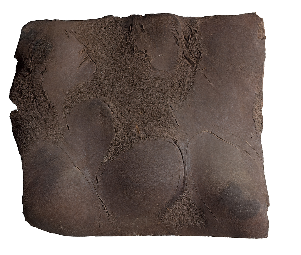 Peza cuadrangular na que aparecen os perfís de dúas cabezas, masculina e feminina, lixeiramente debuxadas no barro na parte superior.