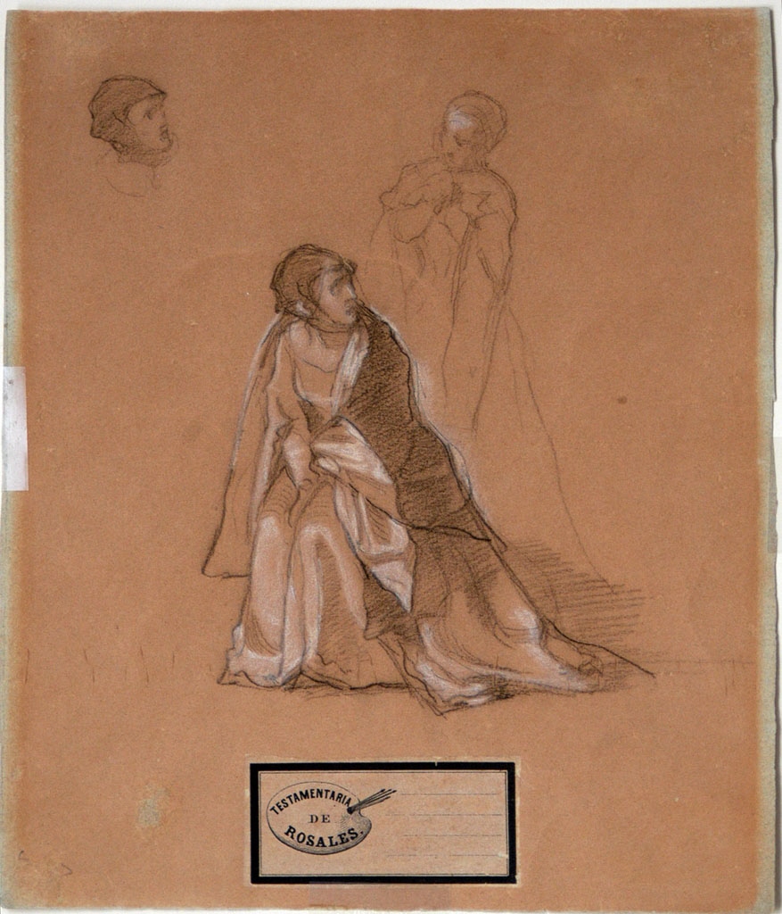 Trátase dun estudo da figura da princesa Xoana de Castela, preparatorio para o lenzo Dona Xoana "a Tola" nos adarves do Castelo da Mota, pintado por Rosales en 1873 e que deixou inconcluso á súa morte. Segundo o coñecido episodio que narra o cadro esbozado por Rosales, este debuxo ilustra o momento en que a princesa, abandona os seus aposentos no inverno, só vestida con roupa lixeira e sen consentir poñerse a resgardo.