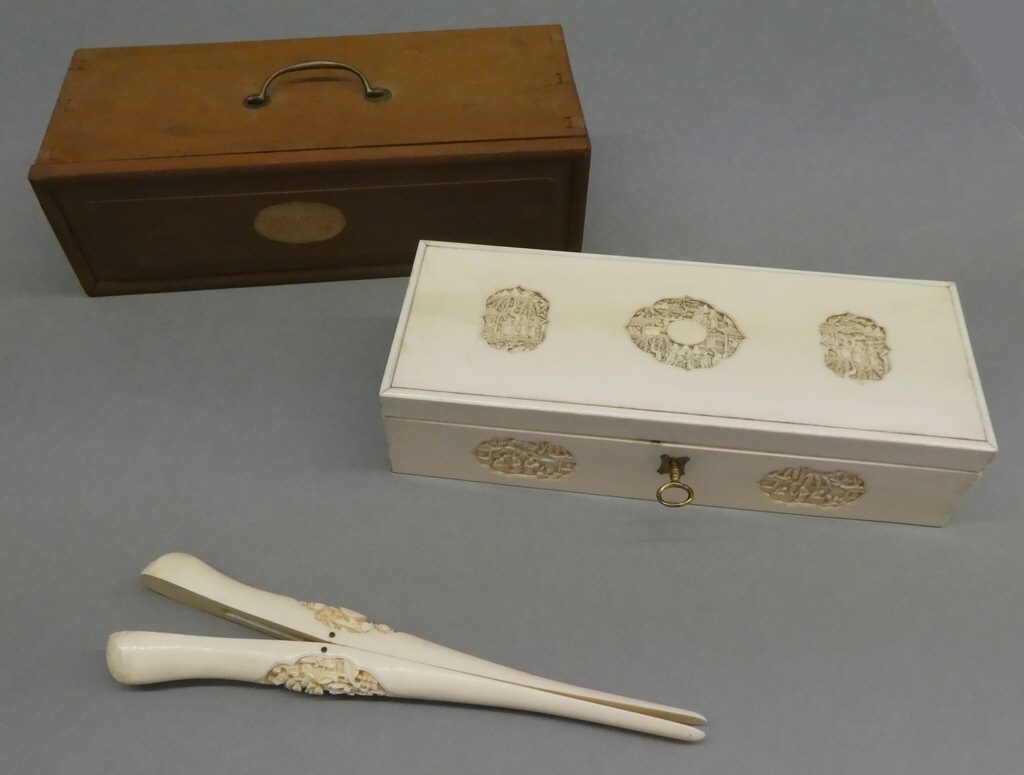 A delicada talla do marfil ten as características dos talleres cantoneses de China. Cantón era o principal centro de produción de marfil e de exportación de pezas. A partir do século XIX ao intensificarse as relacións comerciais dos países occidentais con Asia aumentou a chegada dos seus produtos artísticos e a apertura de puntos de venda en diversas cidades occidentais. O gusto polo orientalismo e o exotismo de China e Xapón, característicos do romanticismo, convidaban o coleccionismo de pezas decorativas de Asia Oriental na segunda metade do século XIX e primeiras décadas do XX. Son unha mostra do gusto burgués polos obxectos artísticos orientais. Este coleccionismo viuse favorecido durante a segunda metade do século XIX e primeiras décadas do XX pola celebración de exposicións universais onde a presenza dos pavillóns chineses foron moi populares e tamén pola difusión da cultura oriental a través da prensa europea.