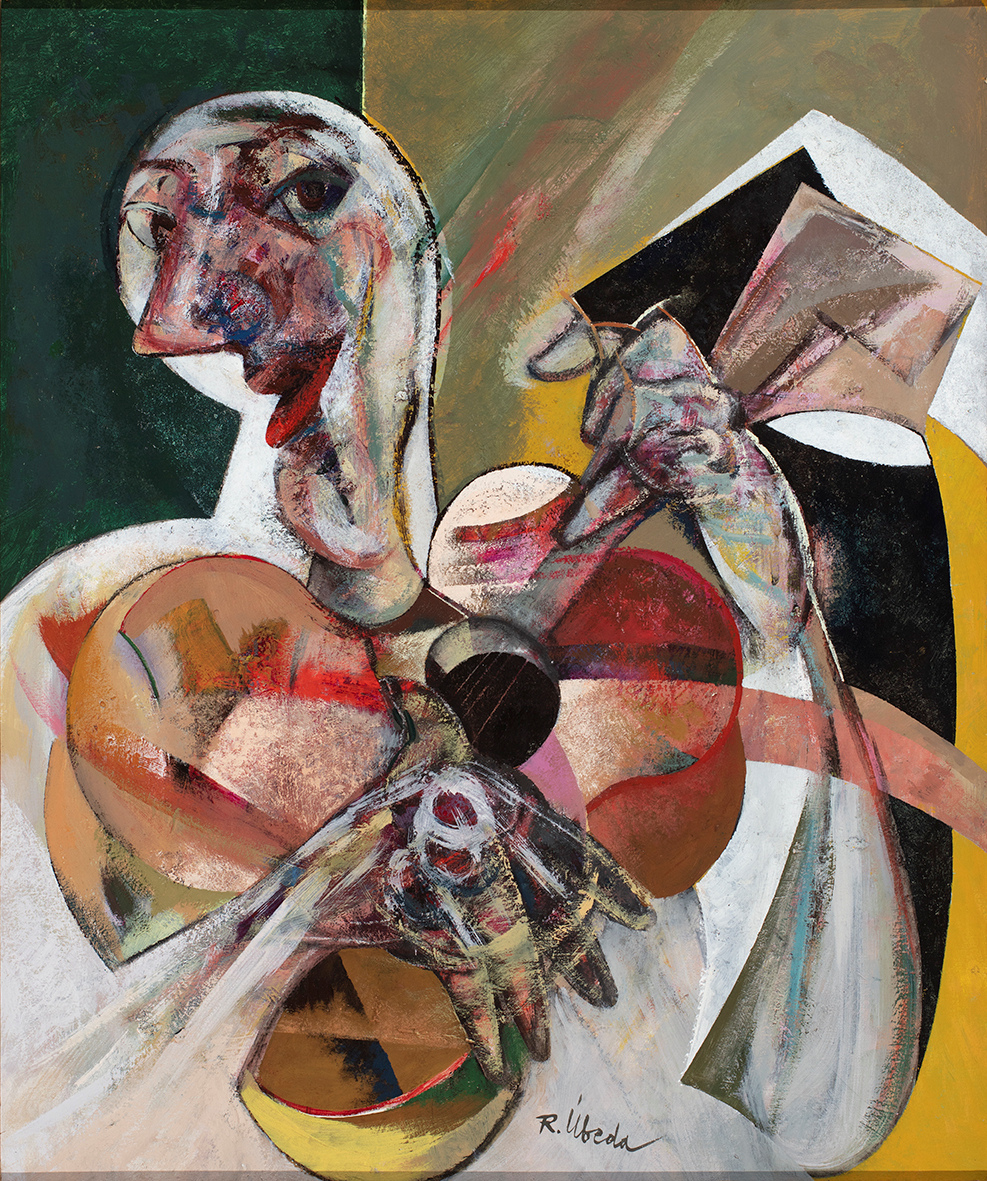 Imaxe: Descargar Escoitar Guitarrista Autores/as: Úbeda, Rafael Cronoloxía: 1994 Folla técnica Número de inventario: 6522 Materia / Soporte: Tablex Autores/as: Úbeda, Rafael Cronoloxía: 1994 Clasificación: Pintura Iconografía: Instrumentos musicais Procedencia: Doazón de Elvira Álvarez Vega Medidas: 53x45 cm Técnica: Pintura ao óleo Obxecto: Cadro