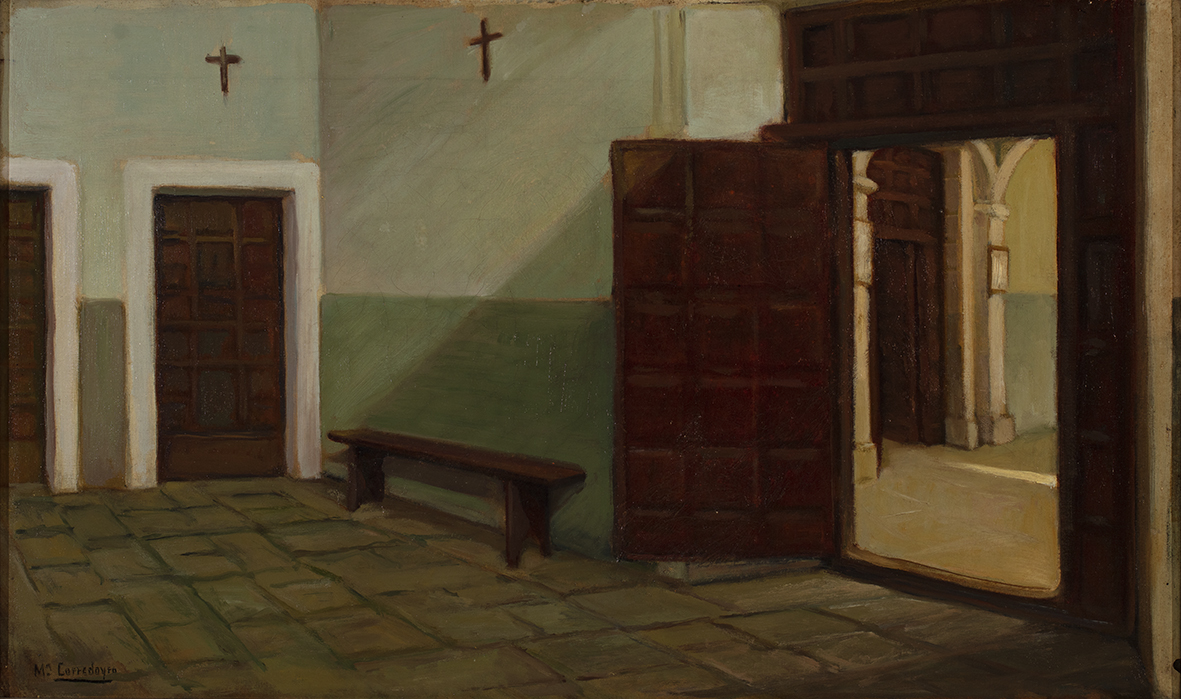 Imaxe: Descargar Escoitar Interior de convento Autores/as: Corredoira y Ruiz de Baro, María del Carmen Cronoloxía: 1945 [ca] - 1960 [ca] Folla técnica Número de inventario: 6531 Materia / Soporte: Lenzo Autores/as: Corredoira y Ruiz de Baro, María del Carmen Cronoloxía: 1945 [ca] - 1960 [ca] Clasificación: Pintura Iconografía: Arquitectura. Interiores Procedencia: Doazón de Elvira Álvarez Vega Medidas: 39x65 cm Técnica: Pintura ao óleo Obxecto: Cadro