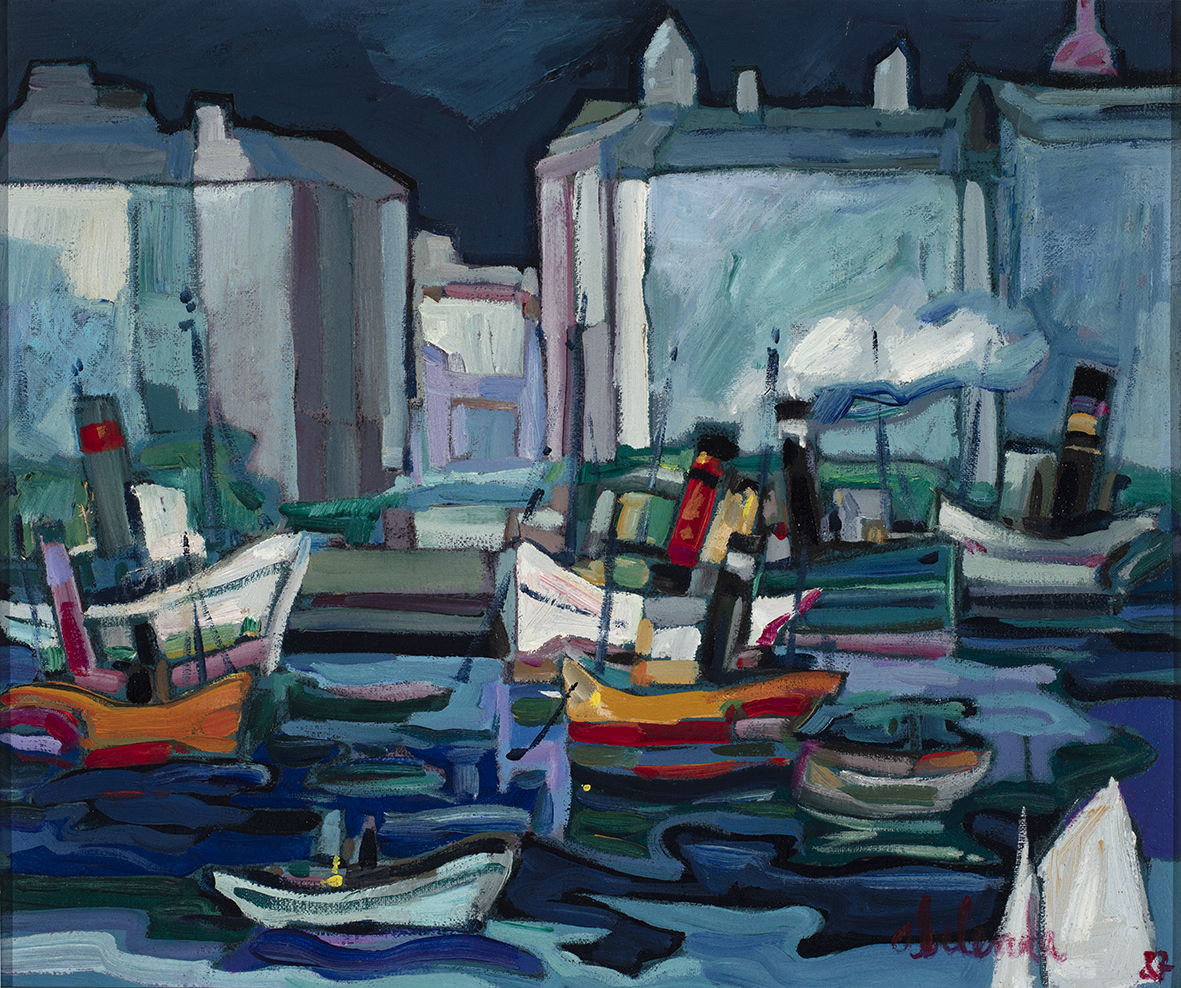 Imaxe: Descargar Escoitar A Mariña con barcos Autores/as: Abelenda, Alfonso Cronoloxía: 1987 Folla técnica Número de inventario: 6509 Materia / Soporte: Lenzo Autores/as: Abelenda, Alfonso Cronoloxía: 1987 Clasificación: Pintura Iconografía: Paisaxe. Mariña Procedencia: Doazón de Elvira Álvarez Vega Medidas: 46x54 cm Técnica: Pintura ao óleo Obxecto: Cadro
