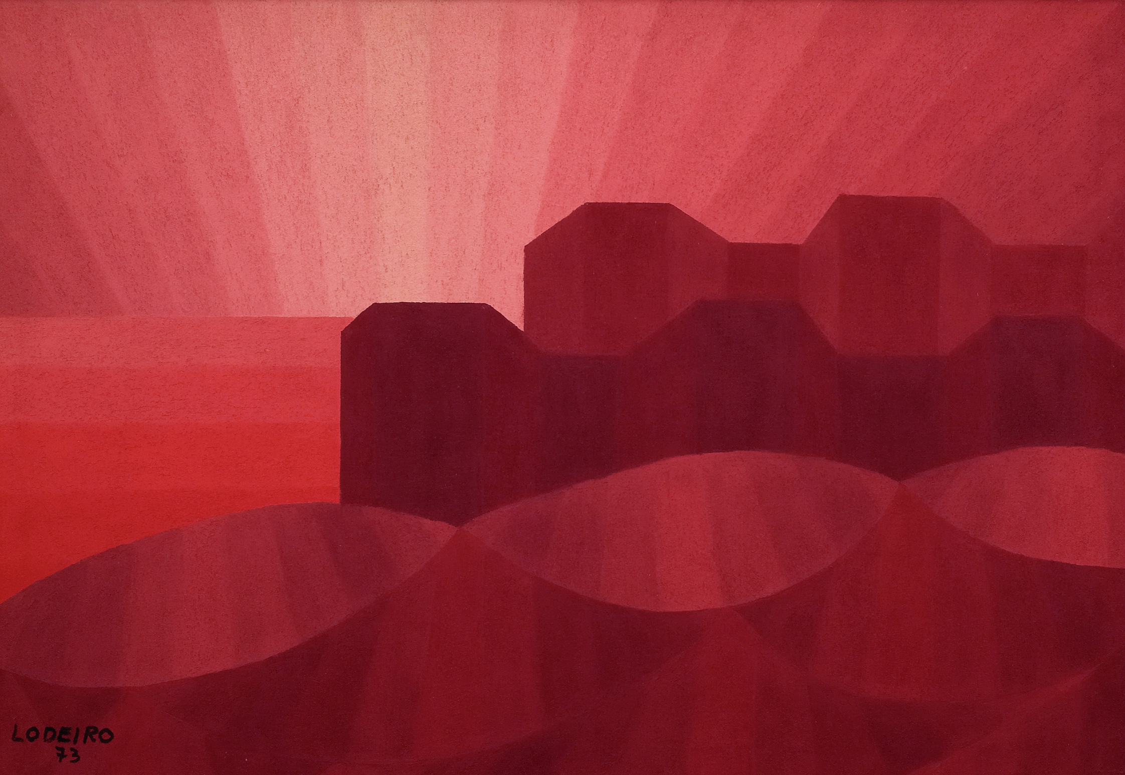Unha constante expresiva na plástica de Lodeiro é a utilización de bandas tonais facendo transicións lumínicas desde a maior delicadeza cromática ata o climax da cor. Atopamos nesta obra unha paisaxe dominada polo baleiro e a depuración das formas, onde a luz e a cor parecen ser tratadas desde un punto de vista simbólico. Podería constituír así un anticipo do que fará tras a súa viaxe a Bos Aires en 1974, cando retoma a paisaxe como monotema.