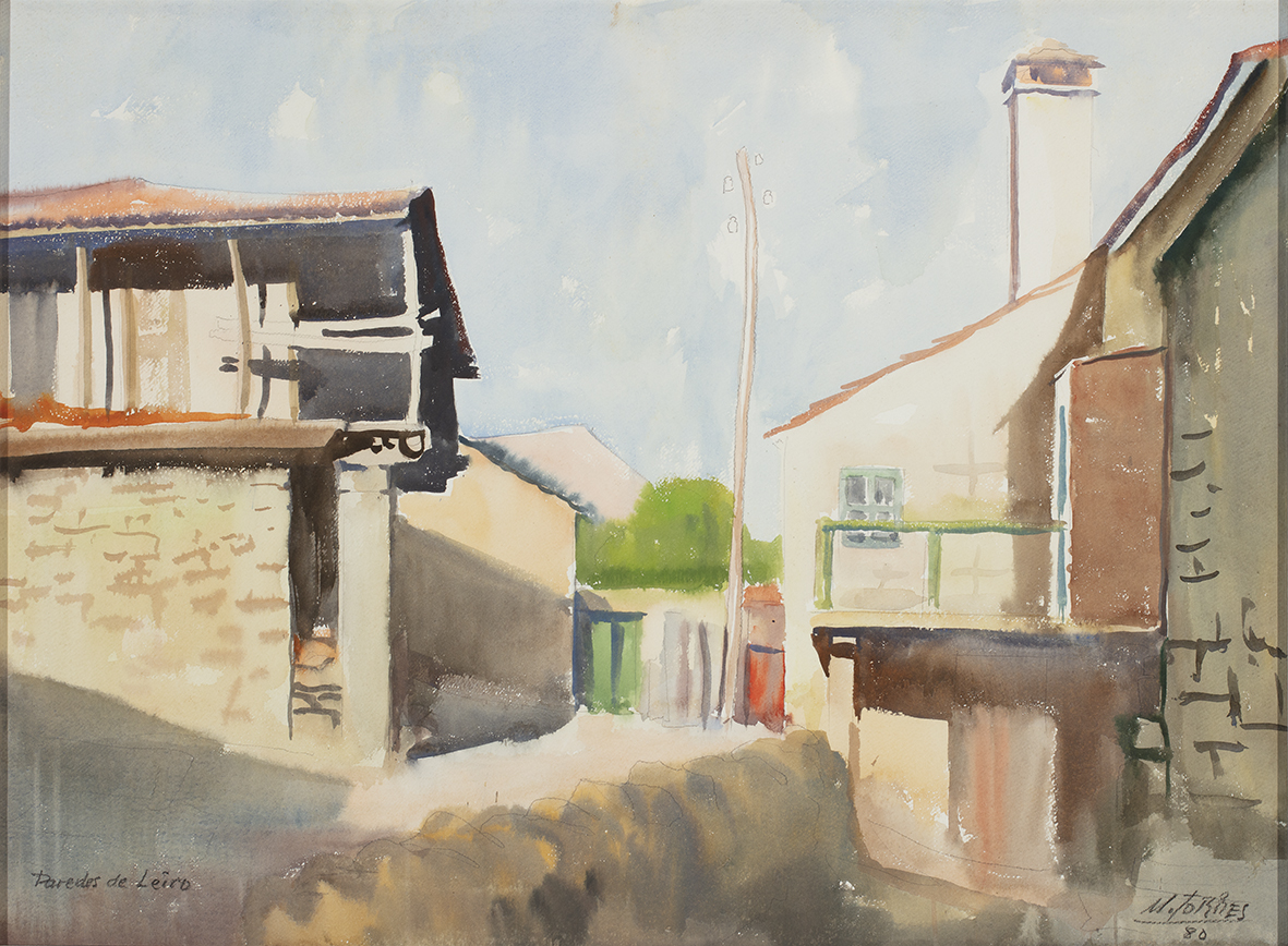 Imaxe: Descargar Escoitar Paredes de Leiro Autores/as: Torres, Manuel Cronoloxía: 1980 Folla técnica Número de inventario: 6514 Materia / Soporte: Papel Autores/as: Torres, Manuel Cronoloxía: 1980 Clasificación: Pintura Iconografía: Arquitectura popular Procedencia: Doazón de Elvira Álvarez Vega Medidas: 630x860 mm Técnica: Acuarela Obxecto: Cadro