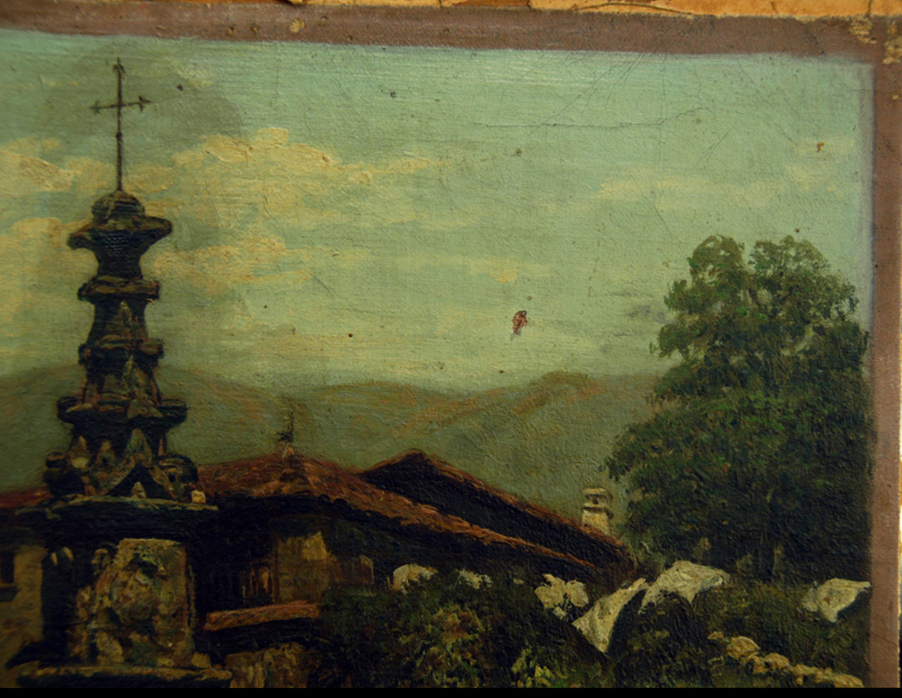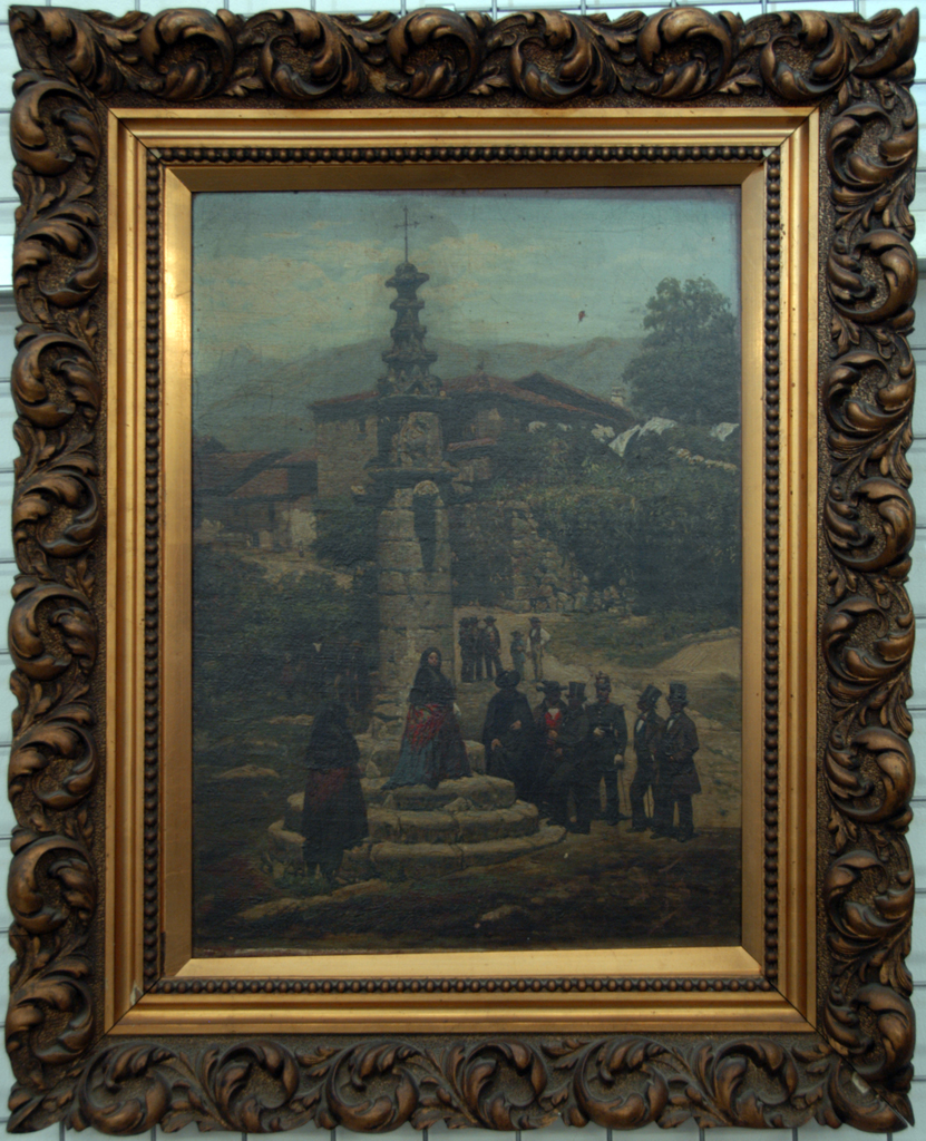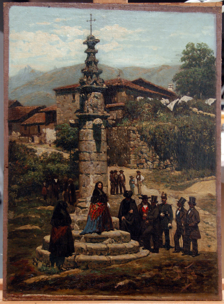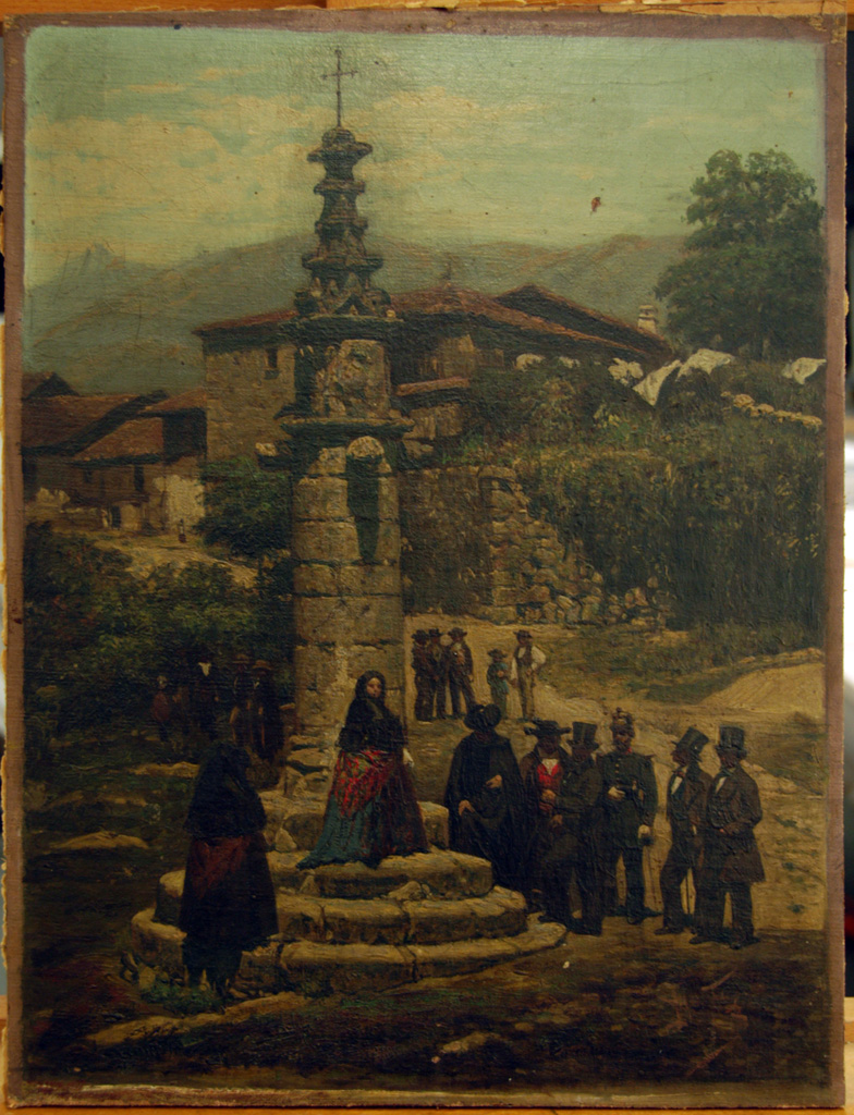 A picota pintada por Fierros asociouse tradicionalmente na bibliografía cunha paisaxe de Salamanca, pero novos estudos vincúlana coa localidade cacereña de Jarandilla de la Vera, nome co que aparece titulada a fotografía realizada por Charles Clifford en 1858 que Fierros tiña na súa colección. O pintor reproduciu a mesma escena variando unicamente a posición do rostro da muller que ocupa o centro da composición.