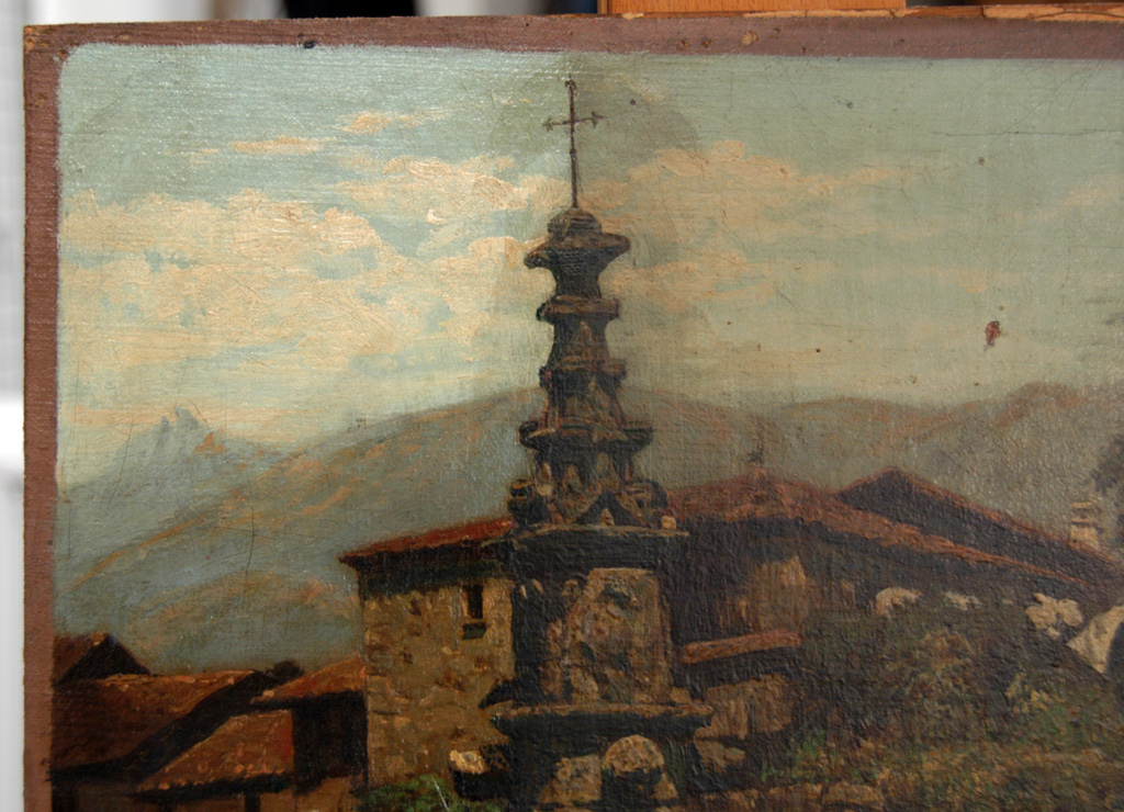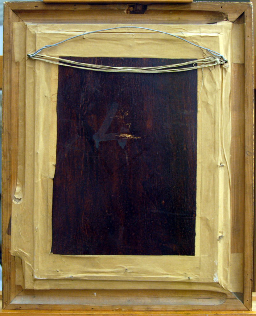 A obra é un lenzo pintado ao óleo adherido posteriormente a un soporte de táboa. Aprécianse sinais de chinchetas na zona superior e no lateral dereito. Aínda que o seu estado é aceptable, amosando só pequenas lagoas e repintes e lixeira oxidación de verniz, a suciedade superficial é moi considerable, afectando a lenzo e marco, polo que fai aconsellable a súa intervención.