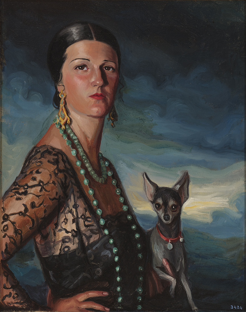 Herminia Rodríguez-Borrell Feijóo (1897-1971), natural de Camariñas, estivo casada co magnate armenio Nubar Gulbenkian (fillo do filántropo Calouste G.), do que se divorciou e pasou despois a vivir no pazo de Sigrás (Cambre, A Coruña) no que faleceu. Este retrato procede deste pazo do que era propietaria.