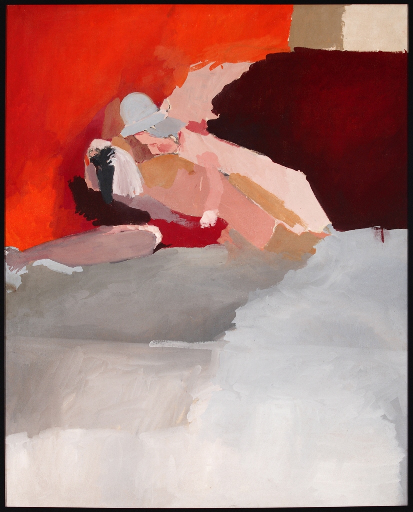 A escena desenvólvese nun espazo subxectivo organizado mediante grandes masas de cores. Estas, irrompen no cadro proporcionando unha gran densidade e forza aos planos de fondo. Parecen como biombos, que chocan visualmente rompendo a continuidade espacial. É un espazo creado a partir de concepcións abstractas. A gravidez das masas de cor contrasta coa volatilidade da parella que centra a composición. As figuras, de perfil, parecen meras marionetas nunha representación teatral , inexpresivas, estáticas, ausentes á inestabilidade que suporía a posición semitumbada en que se atopan.