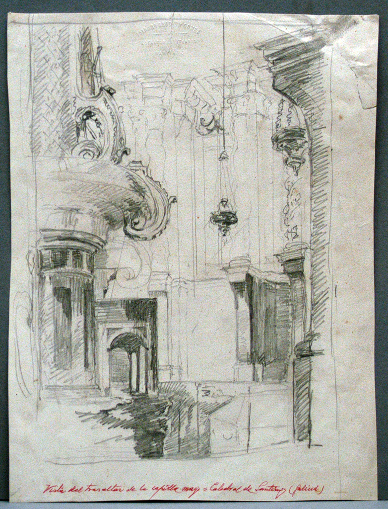 Un debuxo realizado por Brocos deste mesmo espazo do altar maior, cunha pequena variación do ángulo visual, publicouse na revista La Ilustración Gallega y Asturiana en 1879 para ilustrar o inicio das escavacións arqueolóxicas no trascoro da catedral co fin de atopar o sepulcro do apóstolo.