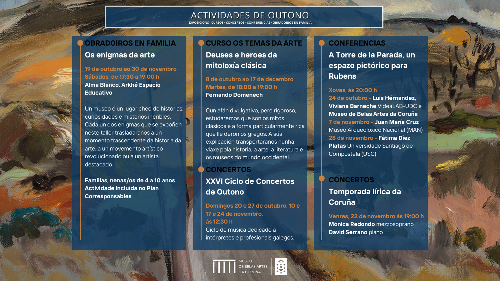 Coa chegada do outono, o Museo de Belas Artes da Coruña anuncia a súa programación de actividades de outono 2024.