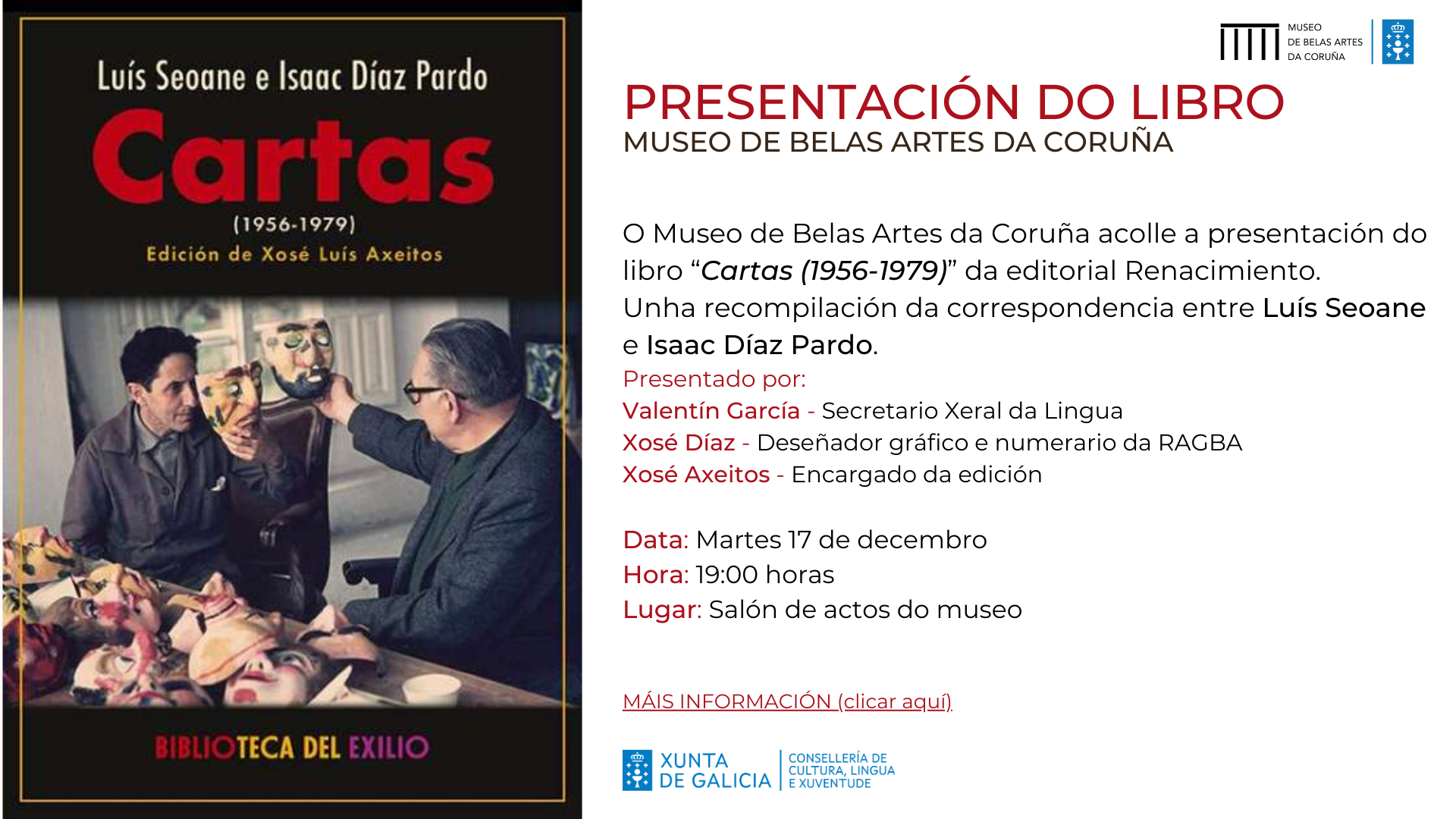 O Museo de Belas Artes da Coruña acolle a presentación do libro Cartas (1956-1979), unha recompilación da correspondencia entre Luís Seoane e Isaac Díaz Pardo, da editorial Renacimiento.