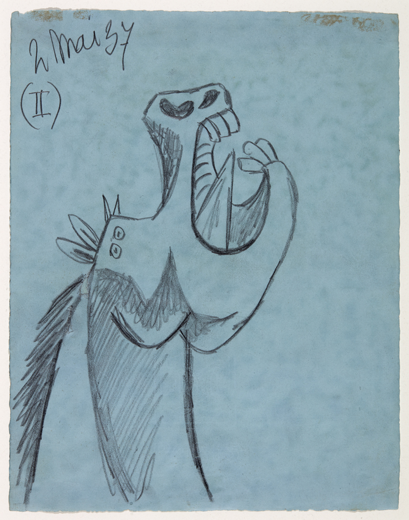 Estudo para a cabeza de cabalo (II). Debuxo preparatorio para "Guernica"